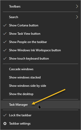 First, open the Task Manager by pressing Ctrl+Shift+Esc or by right-clicking the Windows taskbar and selecting Task Manager. Refer to below image: