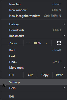 First, launch Chrome. In any window, click the three vertical dots button (the hamburger icon) in the upper right-hand corner and select Settings from the menu. Refer to below image: