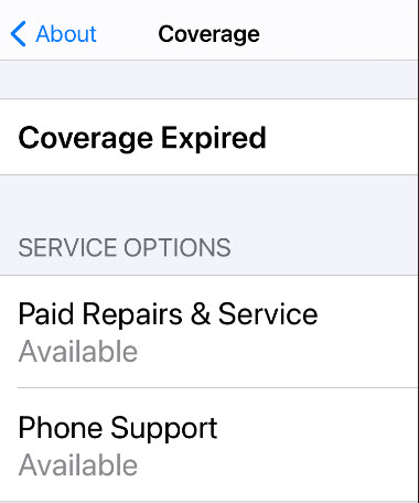 If your device is no longer covered, like mine, you may still be able to get repairs and phone support from Apple, which will be listed on the above screen. Also, you should be able to find a link to the Apple Support app for getting help.