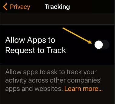 At the top of the Tracking page, toggle the switch beside “Allow Apps to Request to Track“ to turn it Off. Refer to below image: