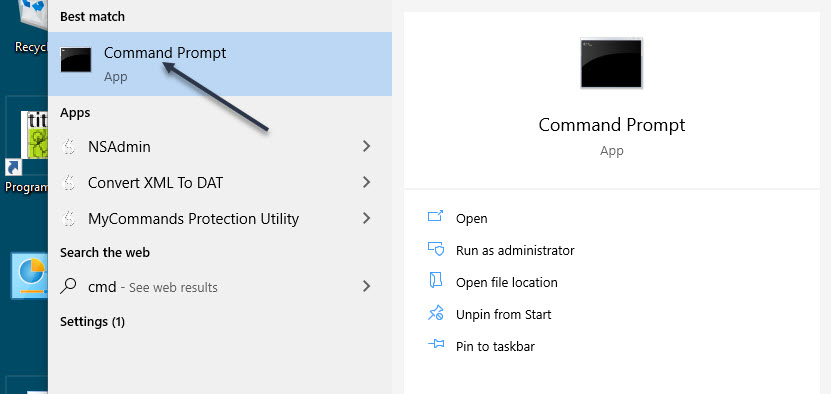 First, click the Start button from the Taskbar and type “cmd” (without quotes) in the Cortana Search bar (next to the Start button). Next, choose Command Prompt from the search results. Refer to below image: