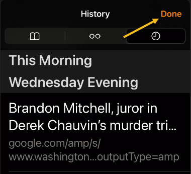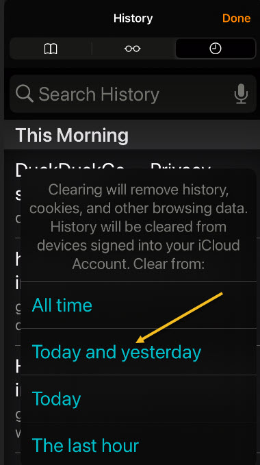 If you made a selection from the pop-up list, your browsing history will be cleared accordingly. Now, tap the Done button in upper right-hand corner to exit.