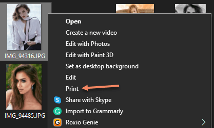 First, open the folder where your JPG/PNG image is in a File Explorer window. If you are on Windows 10, right-click the image and select Print. If you are on Windows 11, right-click the image and choose