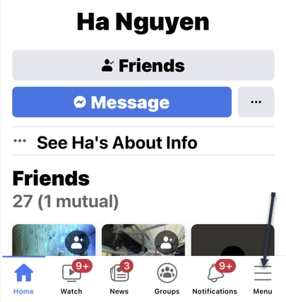 - Open Facebook and tap the Menu or your profile picture in the top right or bottom right of the screen.