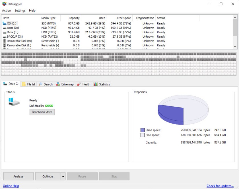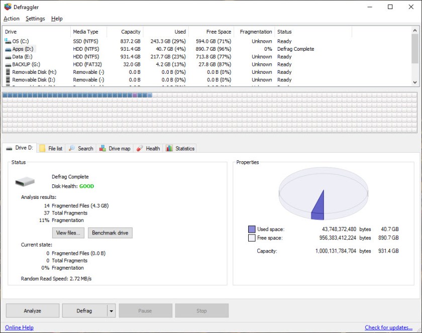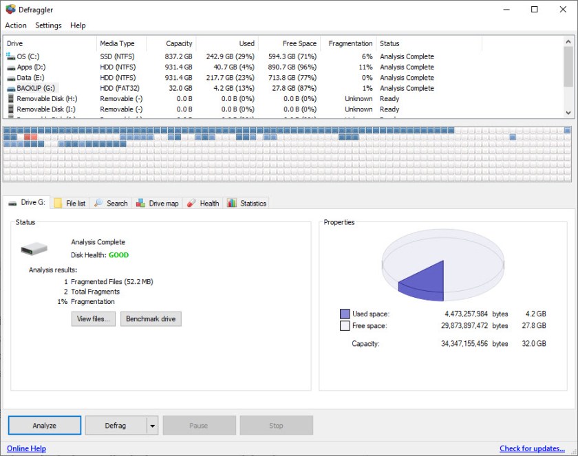 Remember, your SSD or flash drives will not need to be analyzed/defragged by Defraggler.